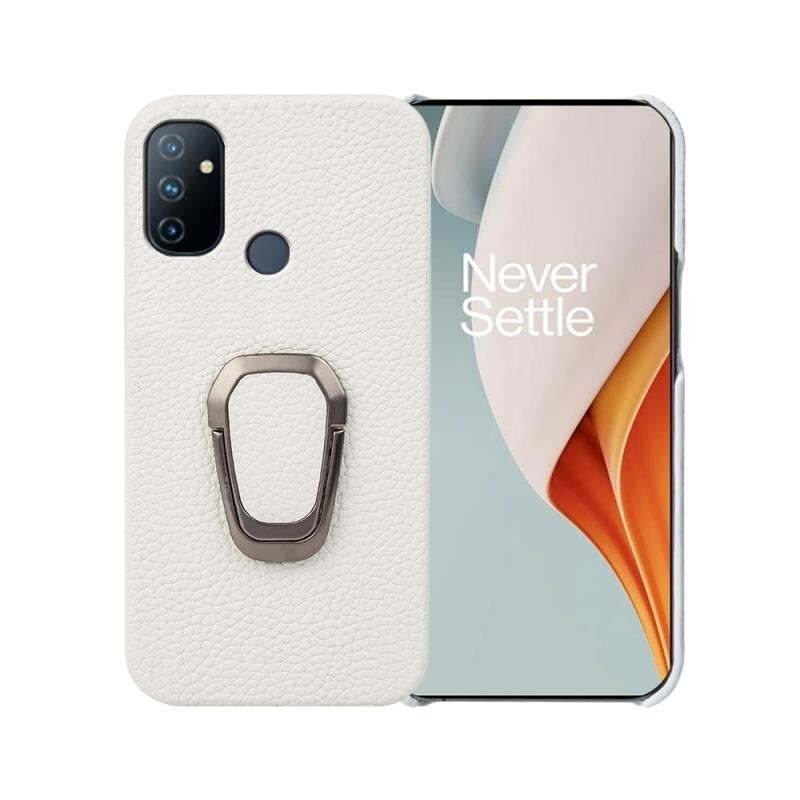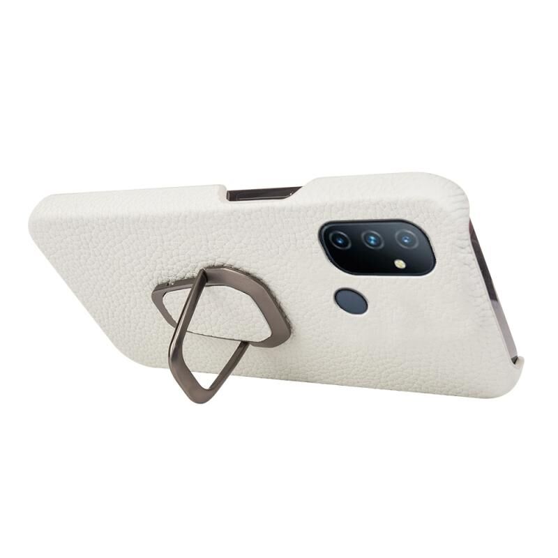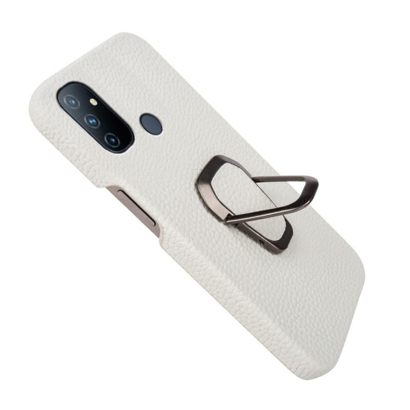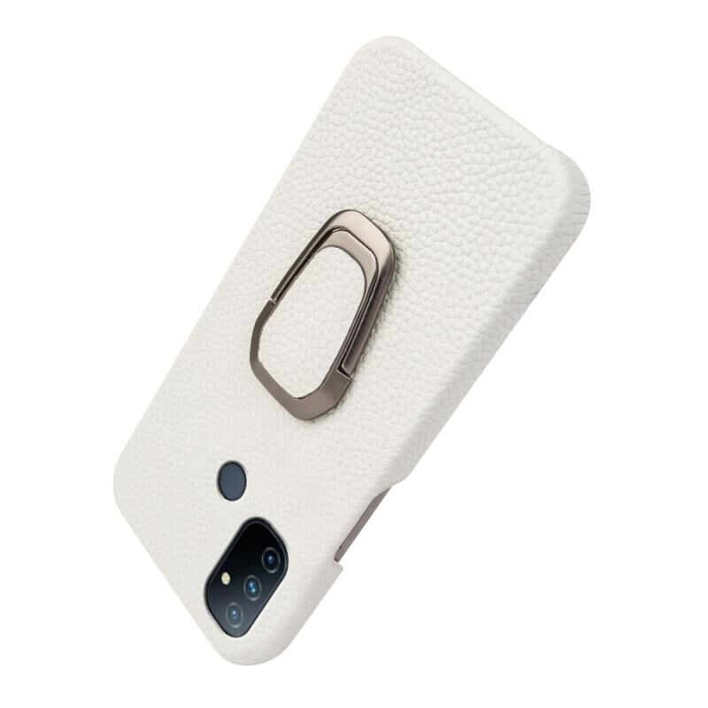 Θήκη τηλεφώνου από γνήσιο δέρμα με υφή λitchi και δακτύλιο στήριξης για OnePlus Nord N100 (Μαύρο)