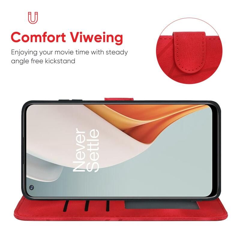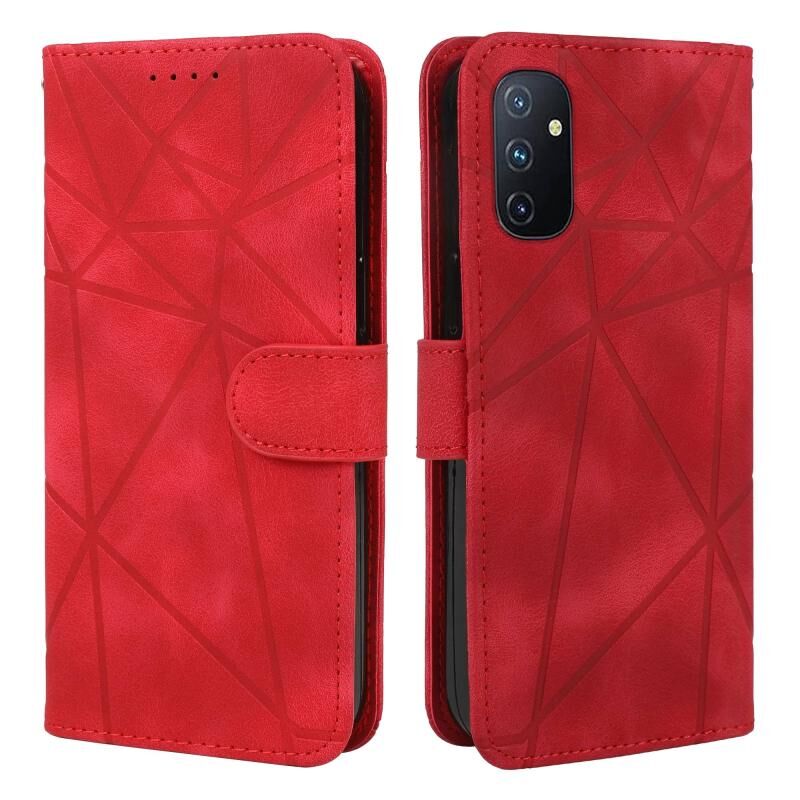 Για OnePlus Nord N100 δέρμα αίσθηση γεωμετρικών γραμμών δερμάτινη θήκη τηλεφώνου (κόκκινο)