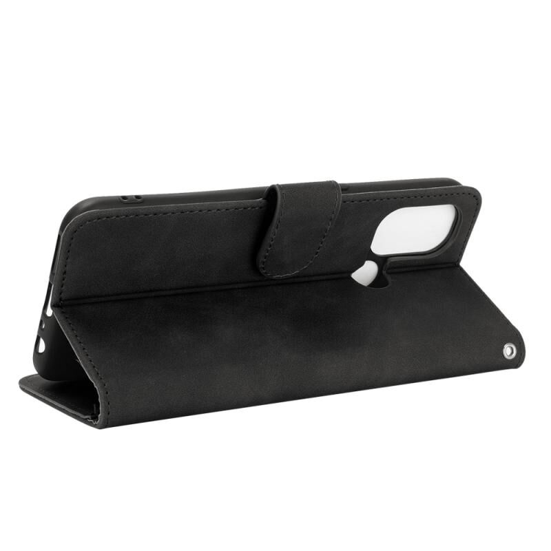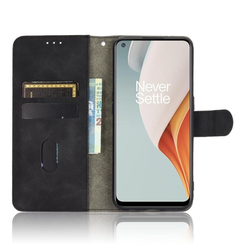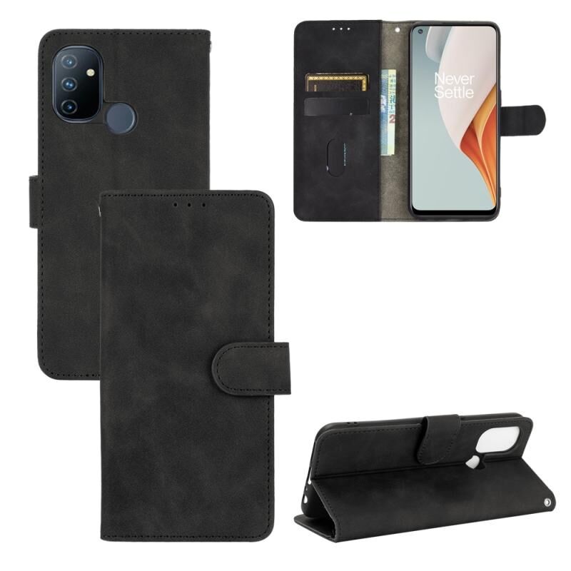 For OnePlus Nord N100 Solid Color Skin Feel Magnetic Buckle Horizontal Flip Calf Texture PU Leather Case with Holder & Card Slots & Wallet(Black)