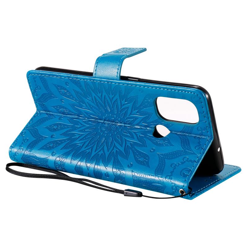 For OnePlus Nord N100 Sun Embossing Pattern Horizontal Flip Leather Case with Card Slot & Holder & Wallet & Lanyard(Blue)