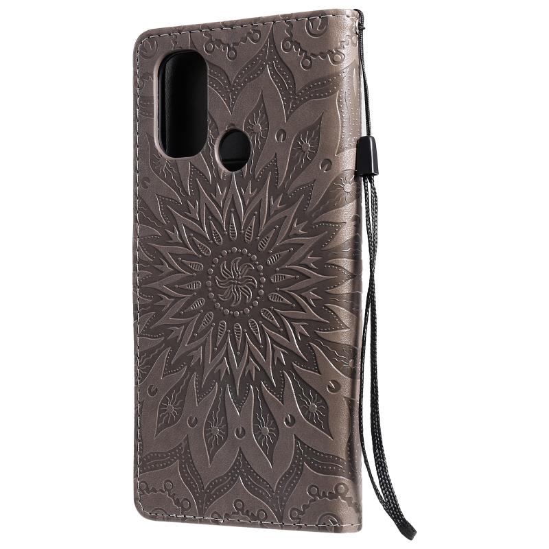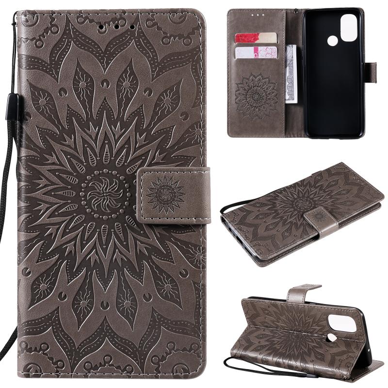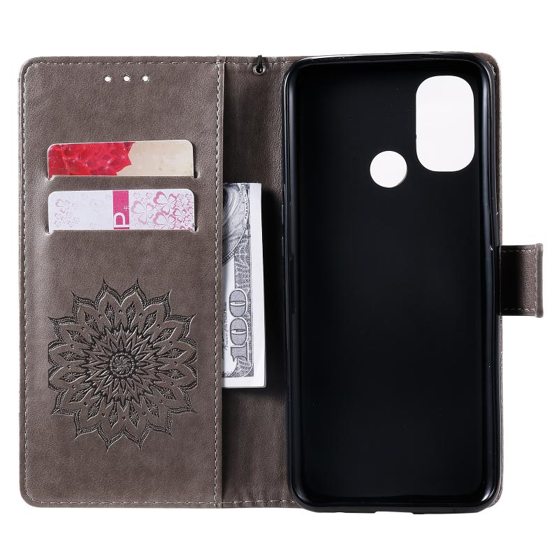 For OnePlus Nord N100 Sun Embossing Pattern Horizontal Flip Leather Case with Card Slot & Holder & Wallet & Lanyard(Grey)