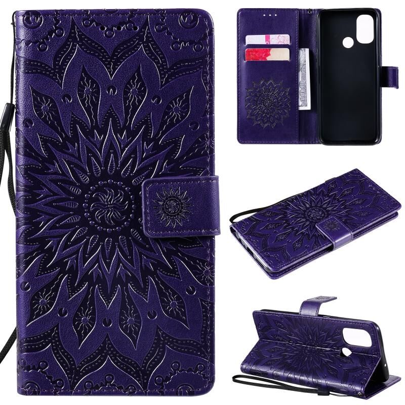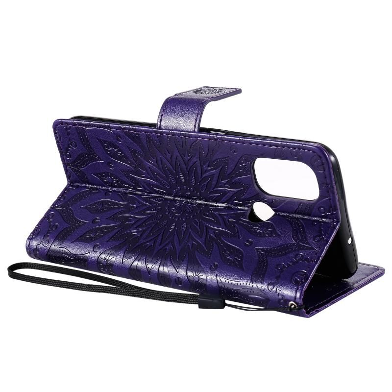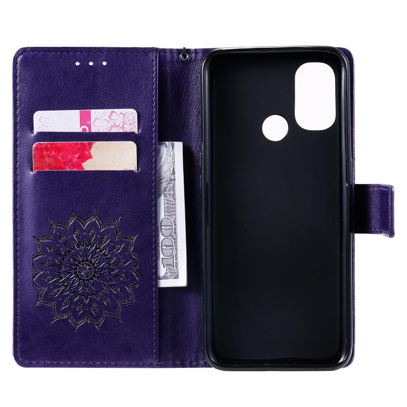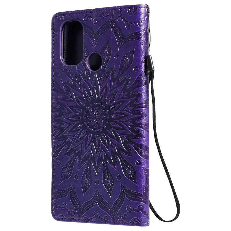 For OnePlus Nord N100 Sun Embossing Pattern Horizontal Flip Leather Case with Card Slot & Holder & Wallet & Lanyard(Purple)