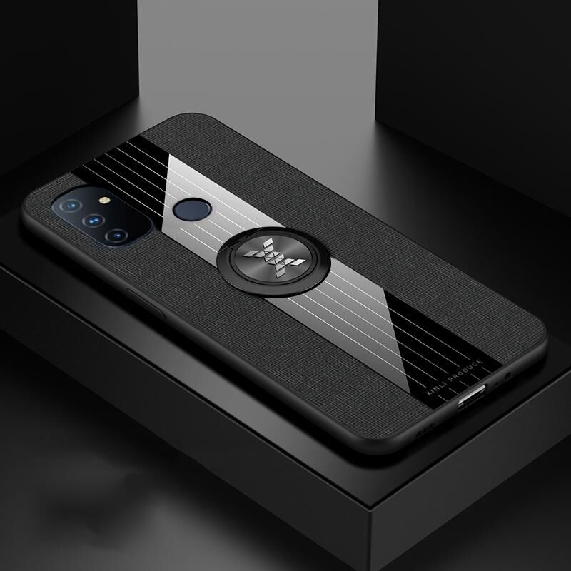 Για OnePlus Nord N100 XINLI ραφή ύφασμα υφή TPU υπόθεση τηλεφώνου με κάτοχο δαχτυλίδι (μαύρο) (XINLI)