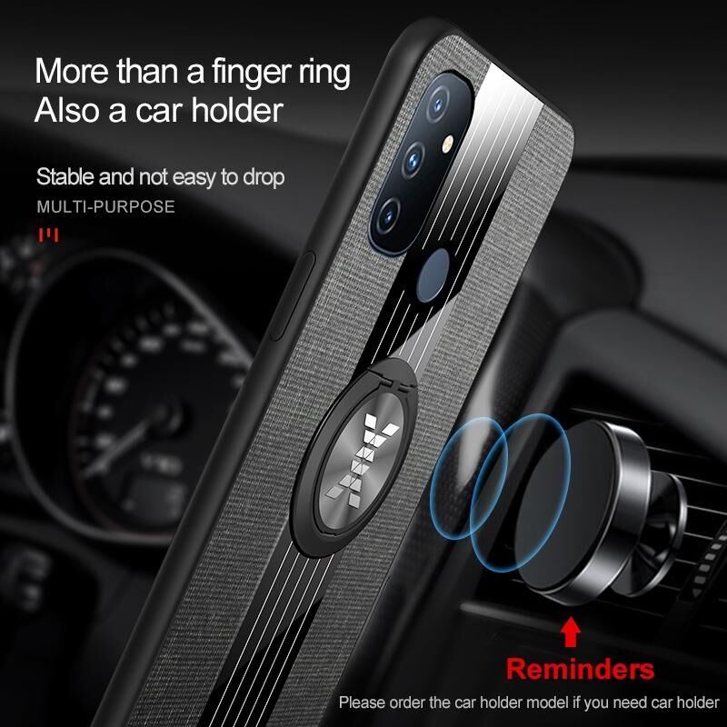 Για OnePlus Nord N100 XINLI ραφή ύφασμα Υφή TPU υπόθεση τηλεφώνου με κάτοχο δαχτυλίδι (γκρι) (XINLI)