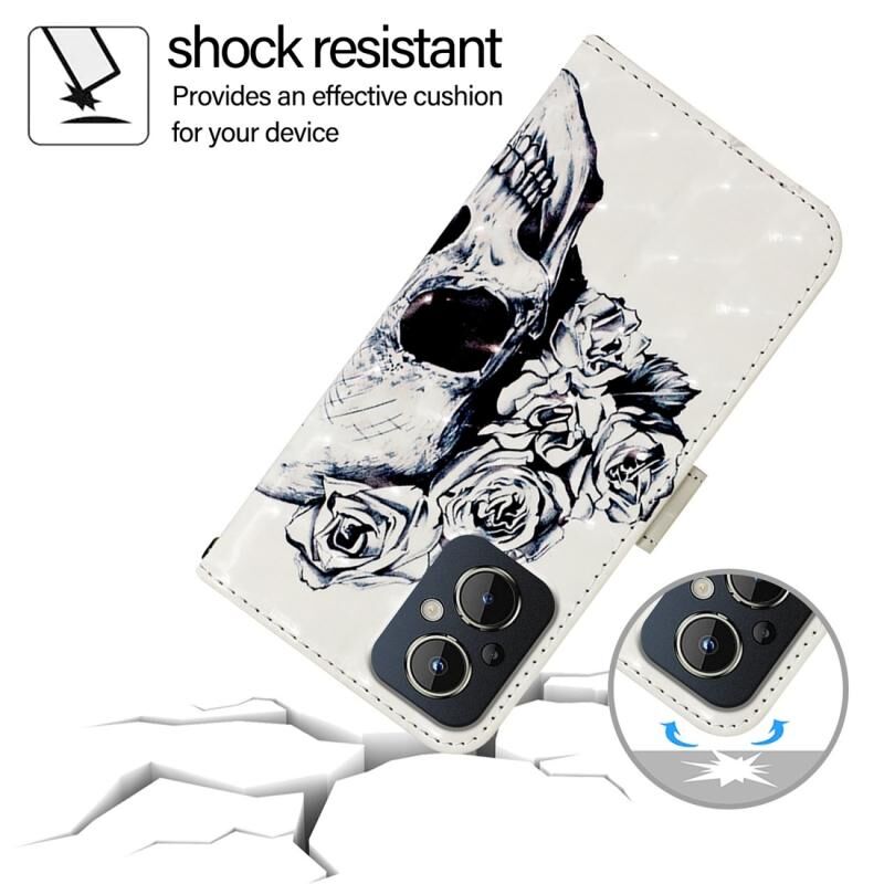 Θήκη τηλεφώνου από δέρμα με οριζόντιο άνοιγμα και τρισδιάστατη ζωγραφική για OnePlus Nord N20 5G (Κρανίο)