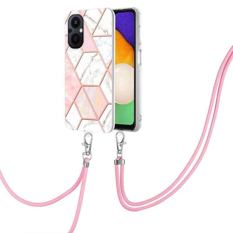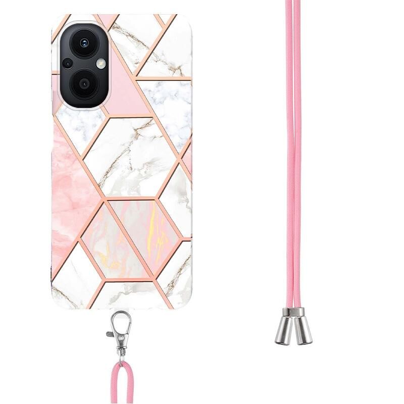 Θήκη τηλεφώνου TPU με σχοινάκι για OnePlus Nord N20 5G, με ηλεκτρολυτική επιμετάλλωση και μαρμάρινο συνδυασμό χρωμάτων (Σκούρο Μωβ)