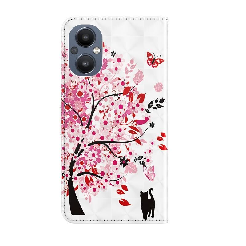 Θήκη τηλεφώνου από δέρμα με σχέδιο 3D για OnePlus Nord N20 5G / OPPO A96 5G (Γάτα και Δέντρο)