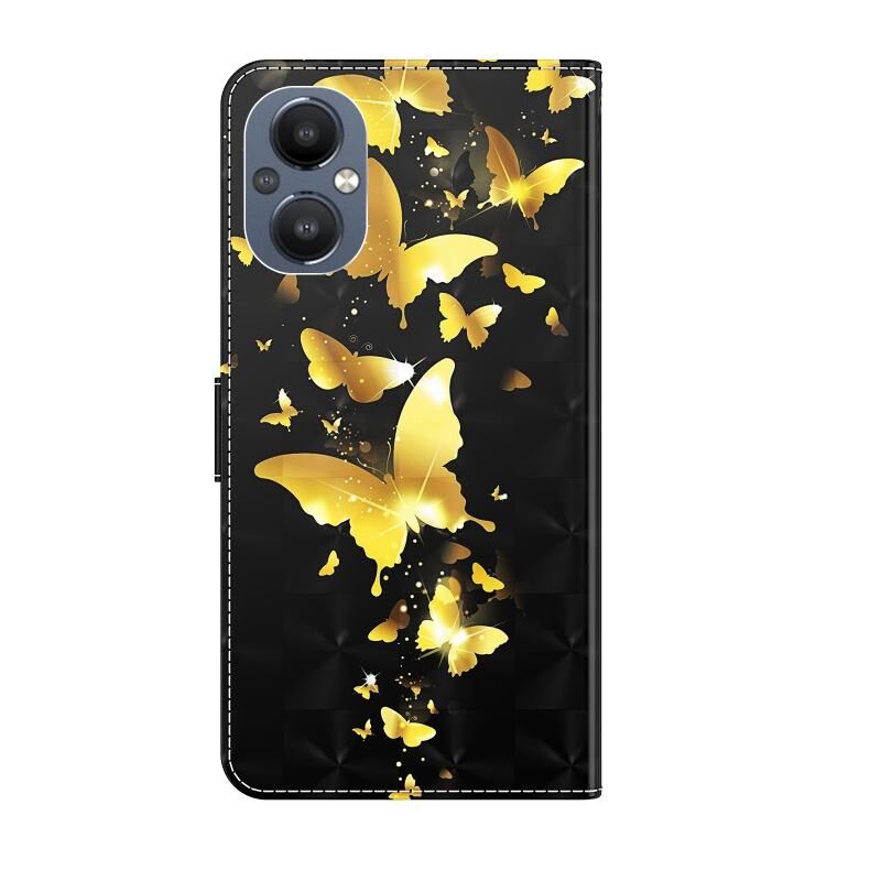 Θήκη τηλεφώνου από δέρμα με σχέδιο 3D ζωγραφικής για OnePlus Nord N20 5G / OPPO A96 5G (Χρυσή Πεταλούδα)