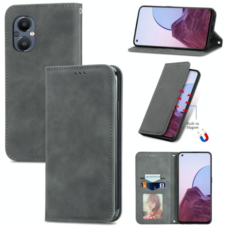 Για OnePlus Nord N20 5G Retro δέρμα αίσθηση μαγνητική δερμάτινη θήκη (γκρι)