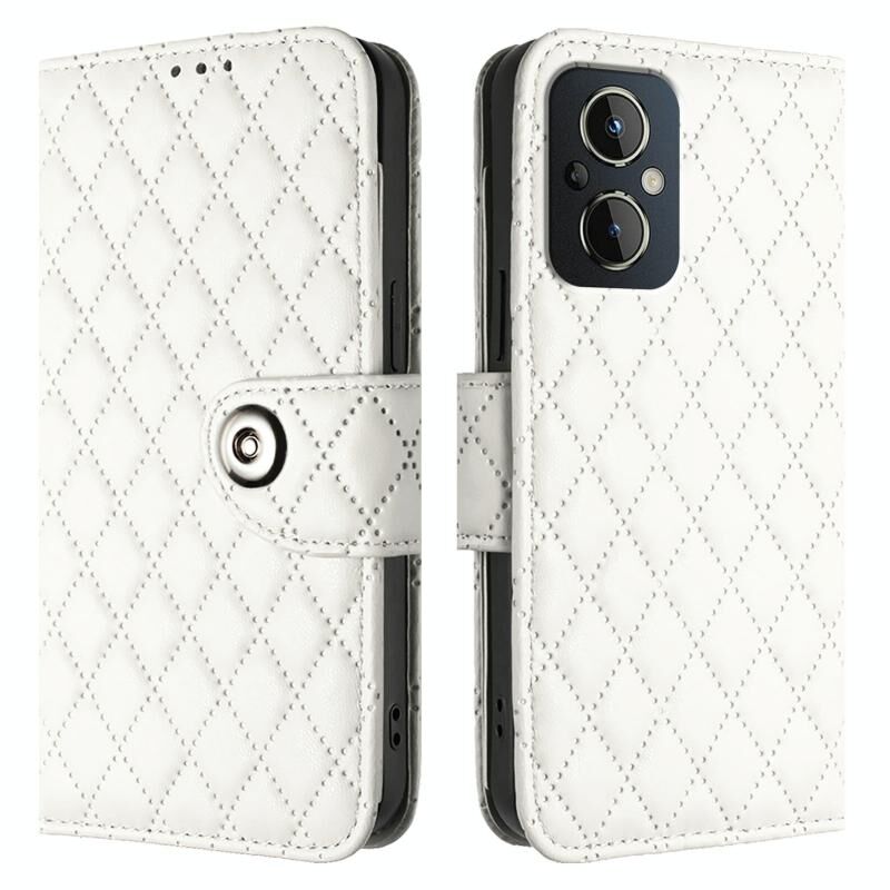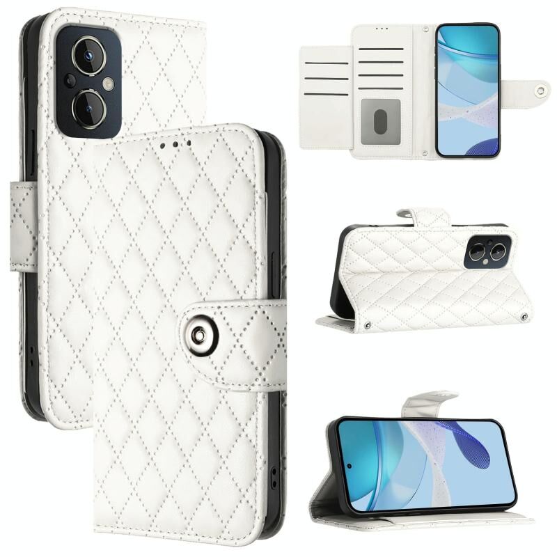 Για το OnePlus Nord N20 5G Rhombic υφή Flip δερμάτινη θήκη τηλεφώνου με κορδόνι (λευκό)