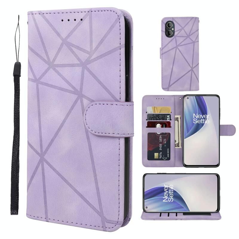 Για OnePlus Nord N20 5G Skin Feel γεωμετρικές γραμμές δερμάτινη θήκη τηλεφώνου (μωβ)