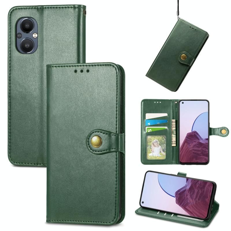 Για OnePlus Nord N20 5G στερεό χρώμα δερμάτινη θήκη τηλεφώνου πόρπη (πράσινο)