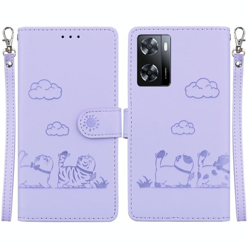 Θήκη τηλεφώνου από δέρμα με χαριτωμένες γάτες RFID για OnePlus Nord N20 SE 4G (Χρυσό Ρόδι)
