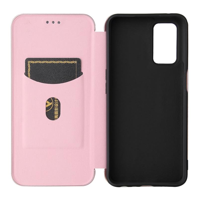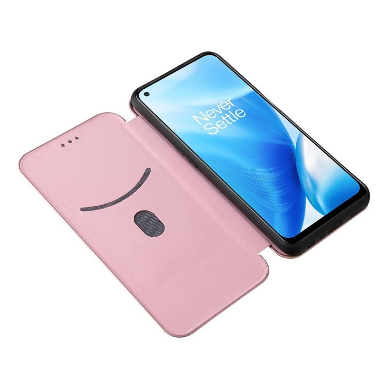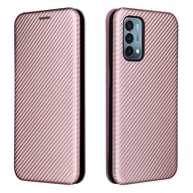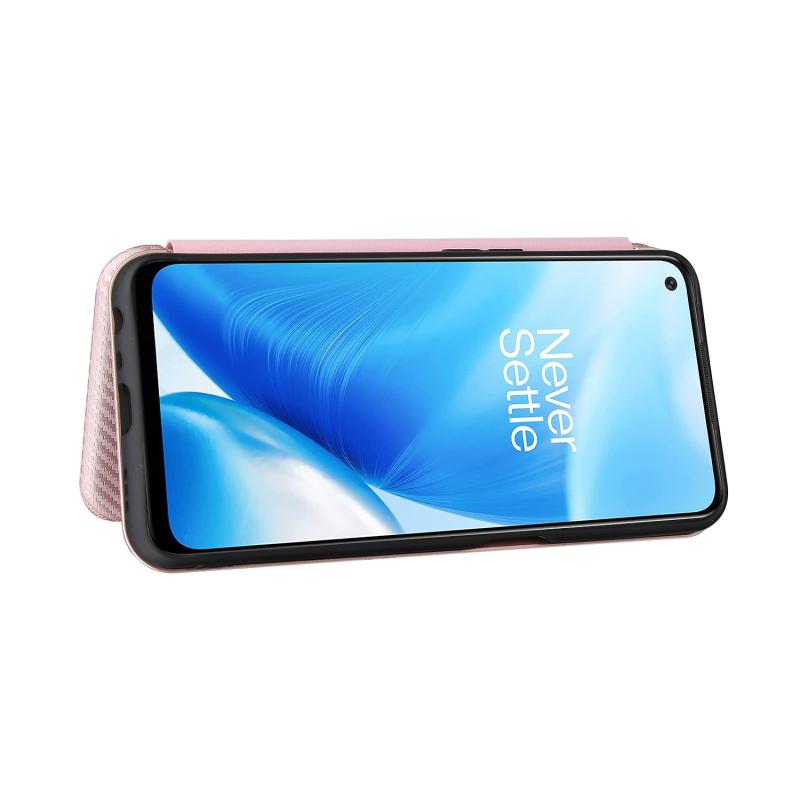 For OnePlus Nord N200 5G Carbon Fiber Texture Horizontal Flip TPU + PC + PU Leather Case with Card Slot(Pink)