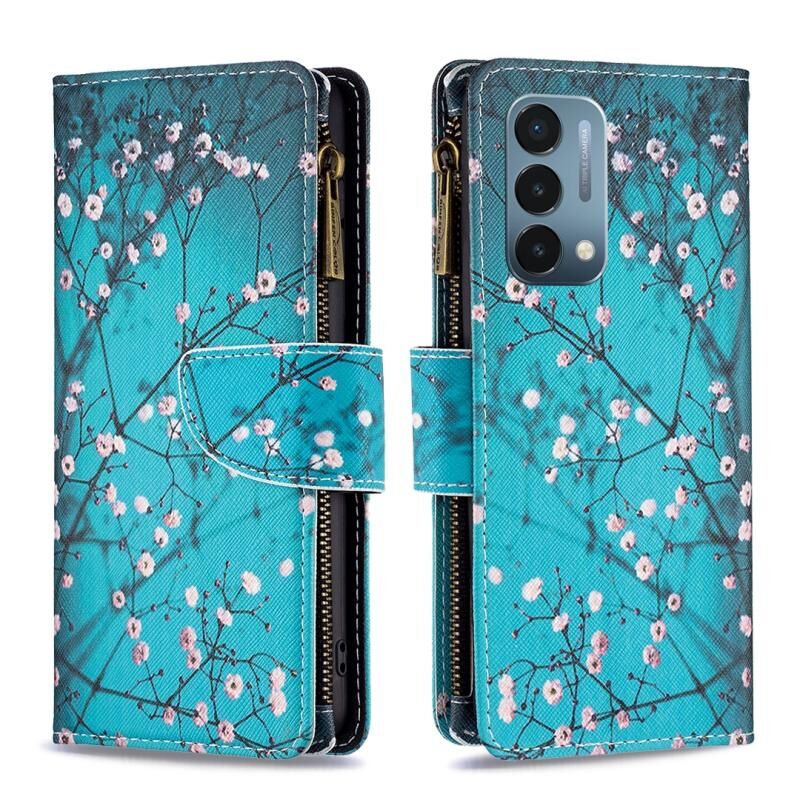 Θήκη τηλεφώνου δερμάτινη οριζόντια με φερμουάρ και σχέδιο ζωγραφικής σε χρώματα για OnePlus Nord N200 5G (Λουλούδι Δαμασκηνιάς)