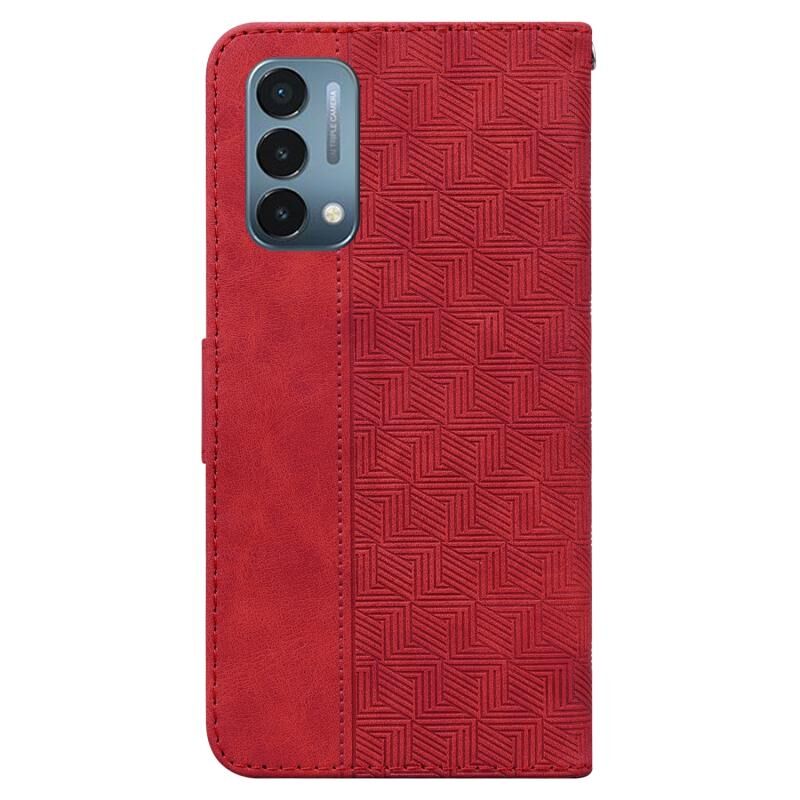 Για OnePlus Nord N200 5G Γεωμετρική ανάγλυφη δερμάτινη θήκη τηλεφώνου (κόκκινο)