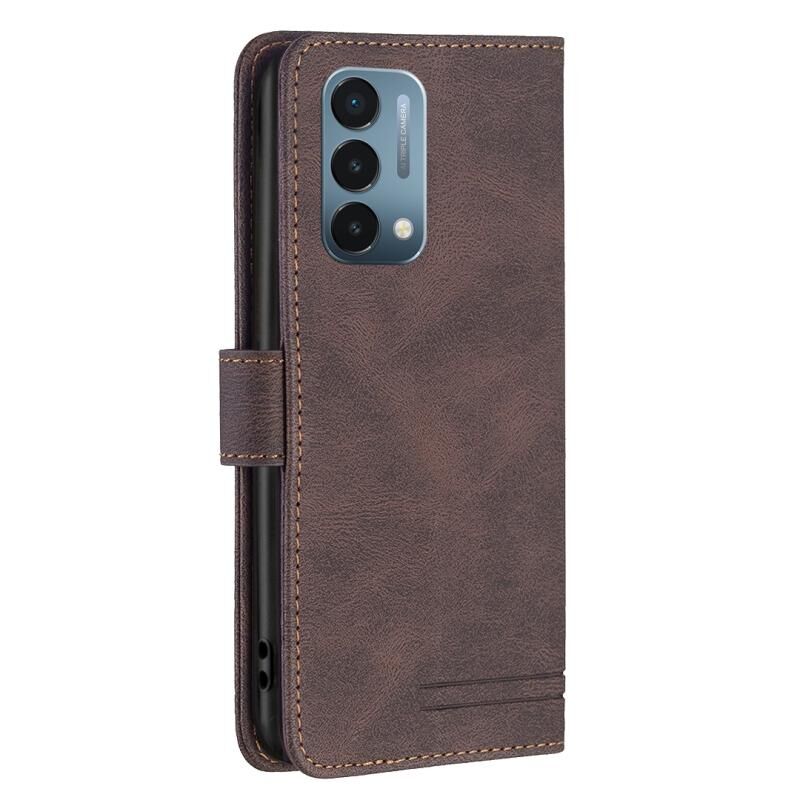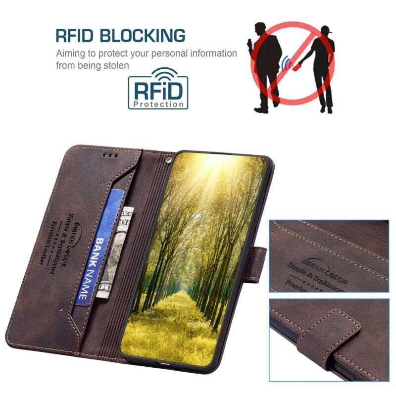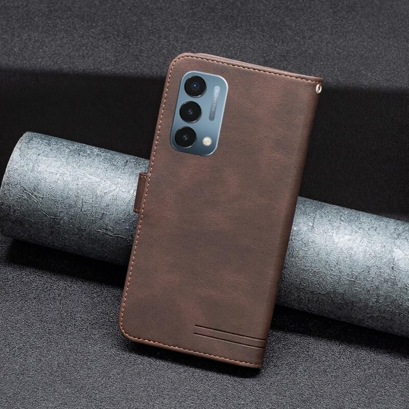 Για OnePlus Nord N200 5G Μαγνητική πόρπη RFID Flip δέρμα τηλέφωνο υπόθεση (καφέ)