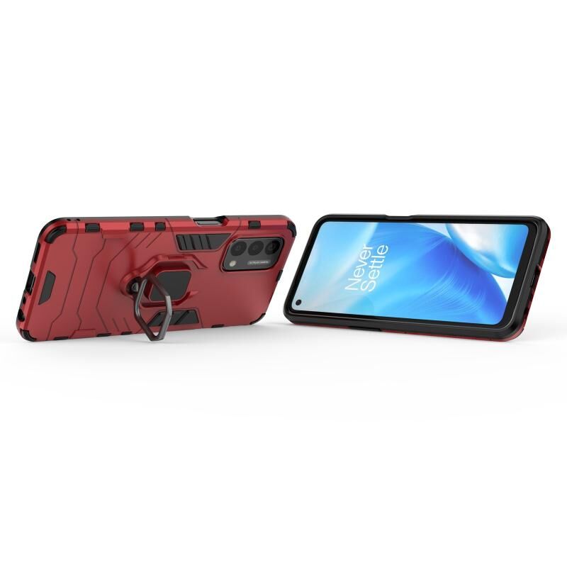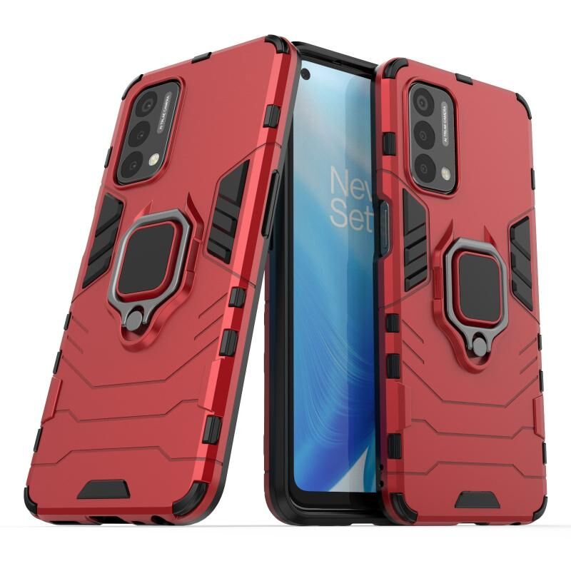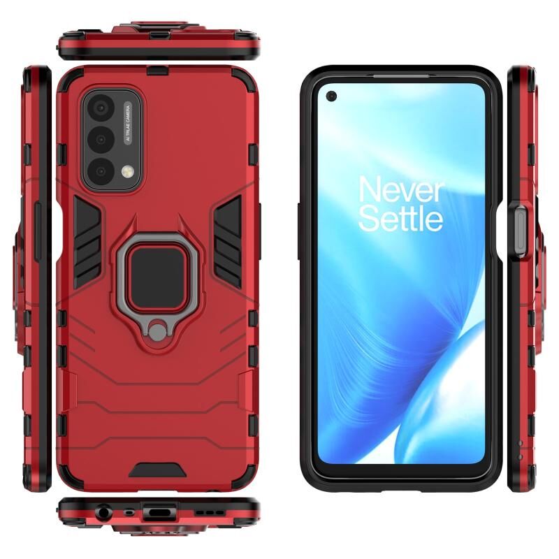 Για OnePlus Nord N200 5G PC + TPU Shockproof προστατευτική θήκη με μαγνητικό δαχτυλίδι κάτοχος (κόκκινο)