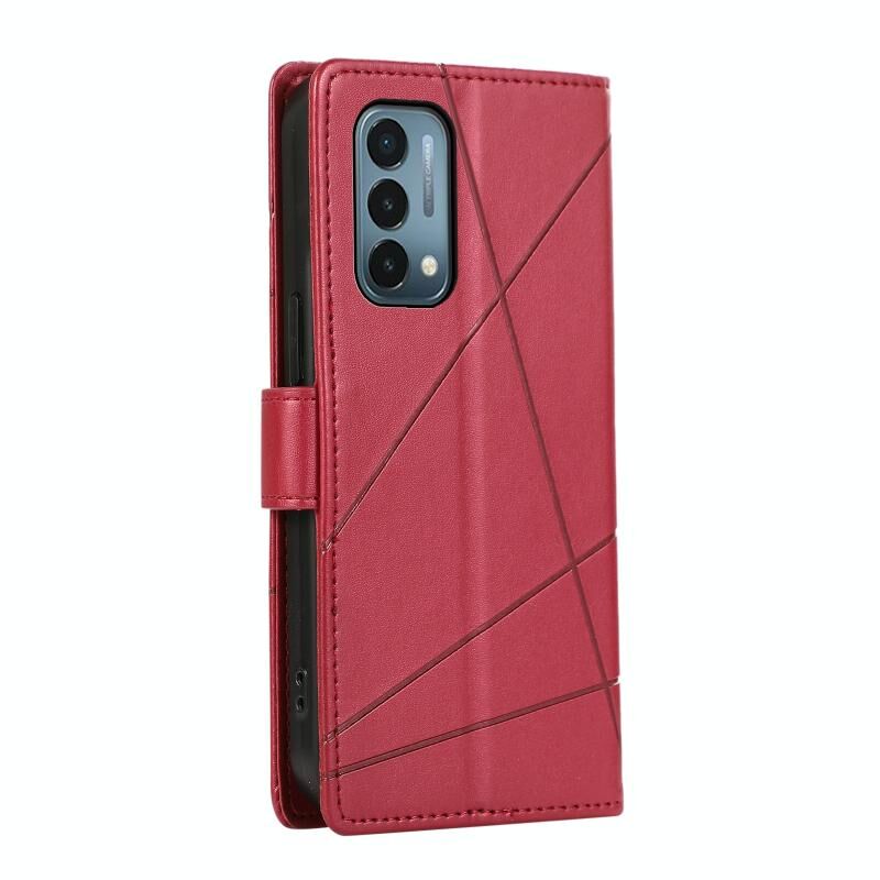 Θήκη τηλεφώνου για OnePlus Nord N200 5G από γνήσιο δέρμα PU με ανάγλυφη υφή και γραμμές (Μπλε)