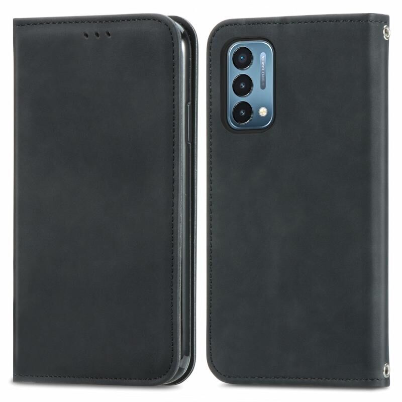 Για OnePlus Nord N200 5G Retro Skin Feel Business Μαγνητική οριζόντια Flip δερμάτινη θήκη με υποδοχές για κάρτες & πορτοφόλι & κορνίζα φωτογραφιών (Μαύρο)