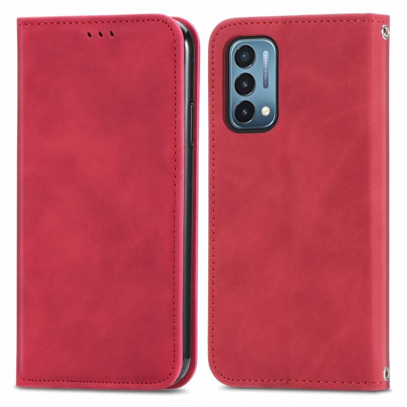 Για OnePlus Nord N200 5G Retro Skin Feel Business Μαγνητική οριζόντια Flip δερμάτινη θήκη με υποδοχές για κάρτες & πορτοφόλι & κορνίζα φωτογραφιών (κόκκινο)
