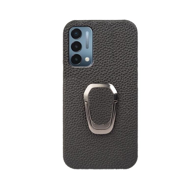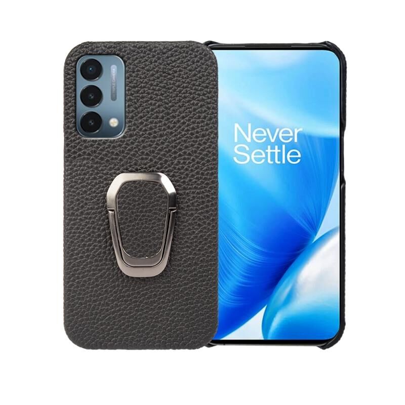 For OnePlus Nord N200 5G Ring Holder Litchi Texture Genuine Leather Phone Case(Black)