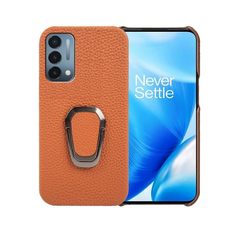 For OnePlus Nord N200 5G Ring Holder Litchi Texture Genuine Leather Phone Case(Brown)