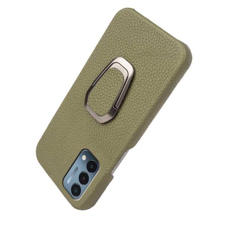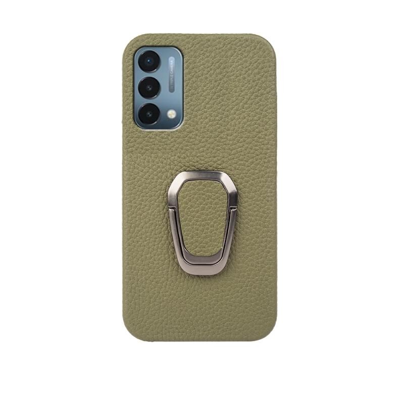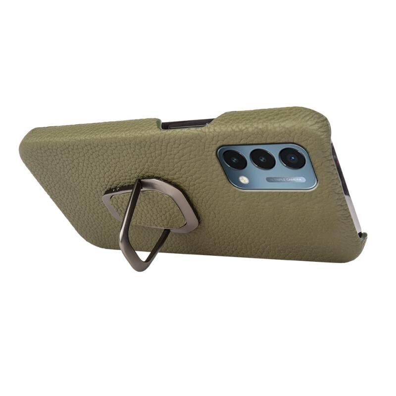 For OnePlus Nord N200 5G Ring Holder Litchi Texture Genuine Leather Phone Case(Green)