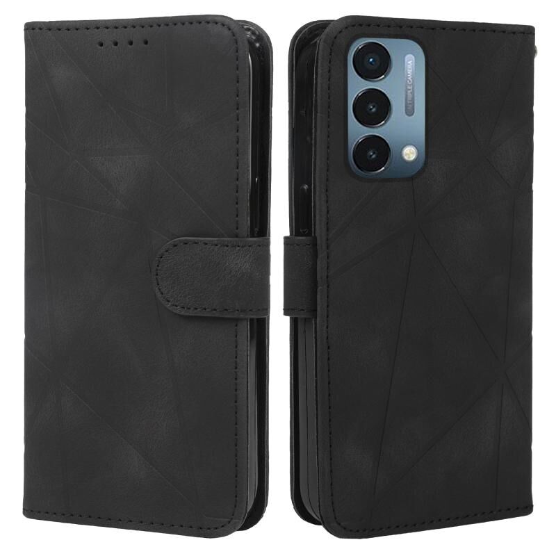 Για OnePlus Nord N200 5G Skin Feel γεωμετρικές γραμμές δερμάτινη θήκη τηλεφώνου (Μαύρο)