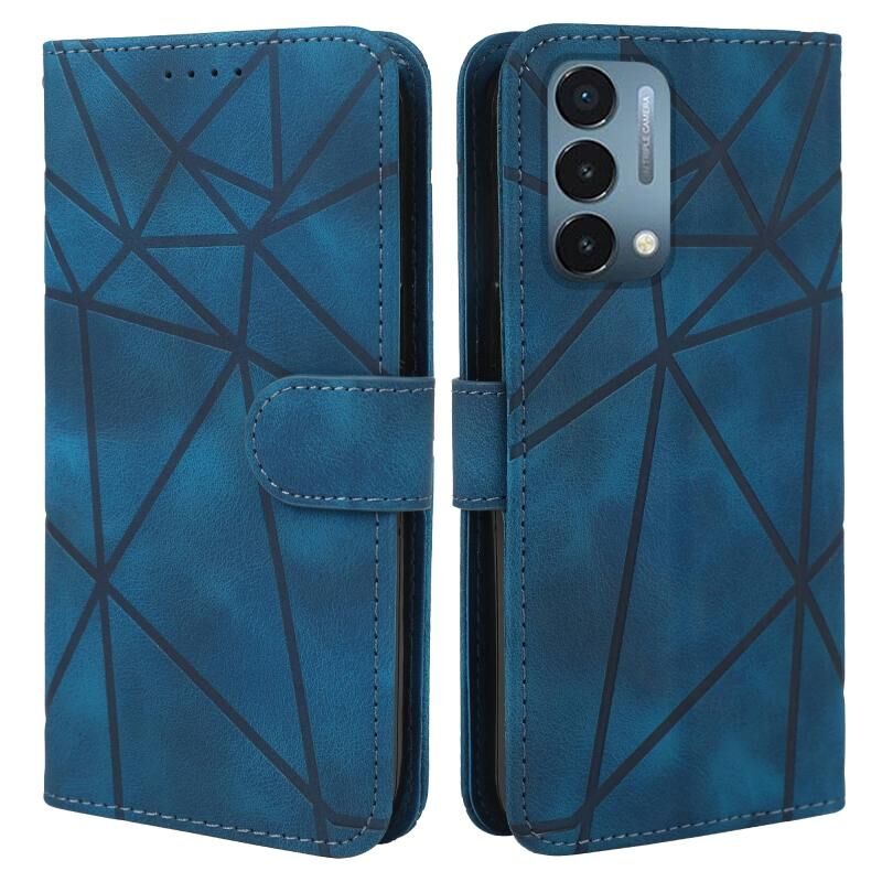Για OnePlus Nord N200 5G Skin Feel γεωμετρικές γραμμές δερμάτινη θήκη τηλεφώνου (μπλε)