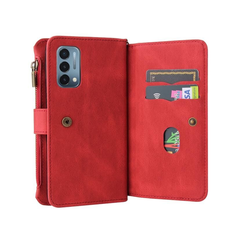 Για OnePlus Nord N200 5G δέρμα αίσθηση PU + TPU οριζόντια Flip δερμάτινη θήκη με κάτοχο & 15 κάρτες Slot & πορτοφόλι & φερμουάρ τσέπη & κορδόνι (κόκκινο)