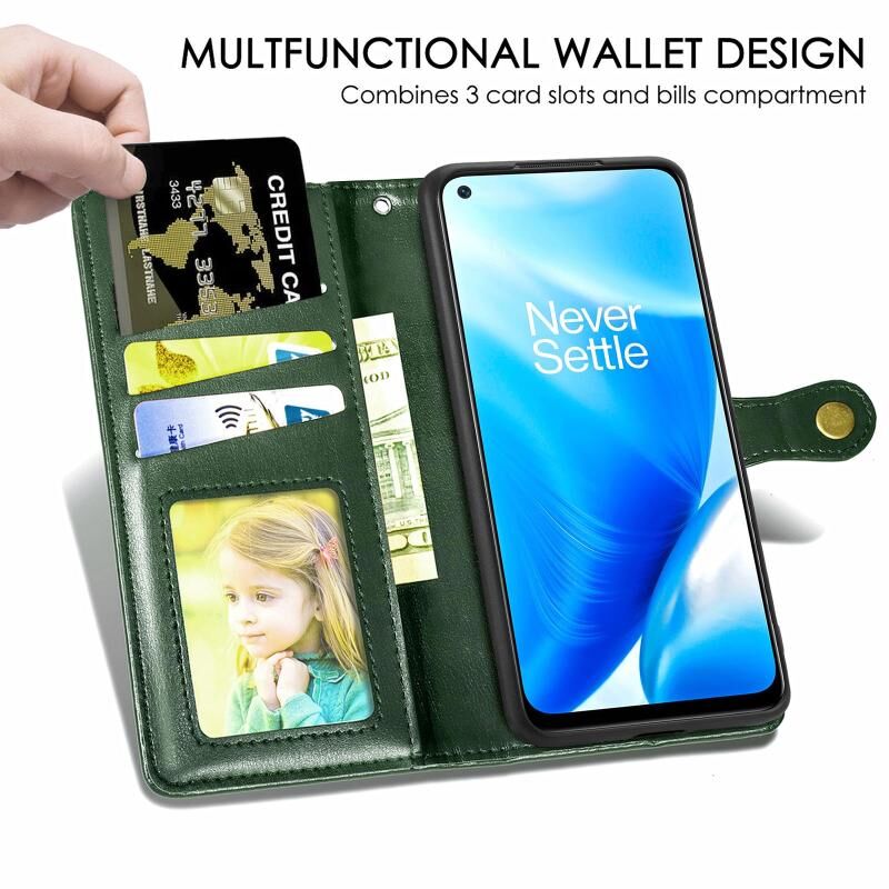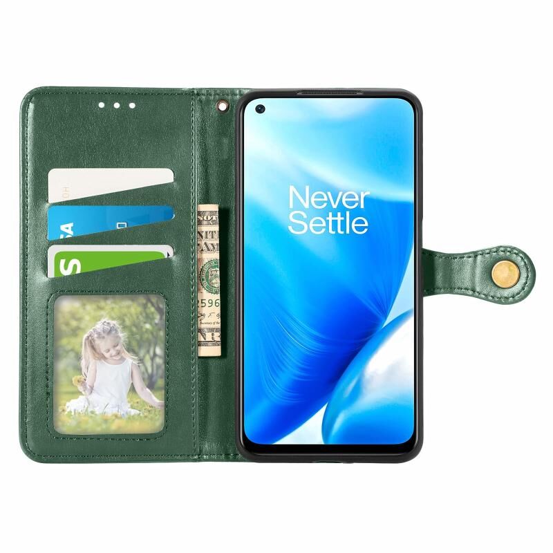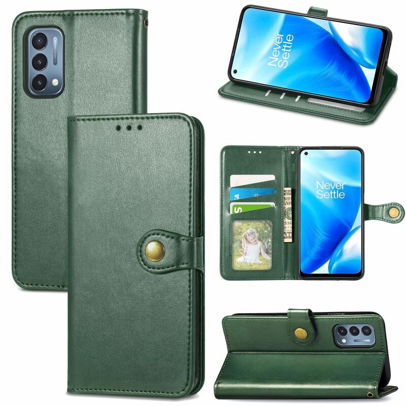 Για OnePlus Nord N200 5G Αμιγές χρώμα δερμάτινη θήκη τηλεφώνου πόρπη με κορδόνι & πλαίσιο φωτογραφιών & υποδοχή κάρτας & πορτοφόλι & λειτουργία Stand (πράσινο)