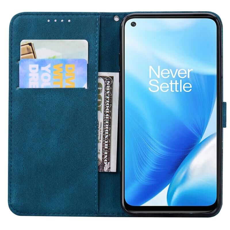 Θήκη δέρματος οριζόντιας αναδίπλωσης για OnePlus Nord N200 με υφή retro, ανάγλυφα σχέδια πεταλούδων, με βάση στήριξης & θήκες καρτών & πορτοφόλι (Καφέ)