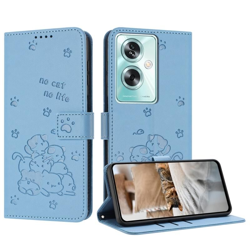 Θήκη δέρματος τηλεφώνου με ανάγλυφο γατάκι και λουρί για OnePlus Nord N30 SE 5G Global (Μωβ)