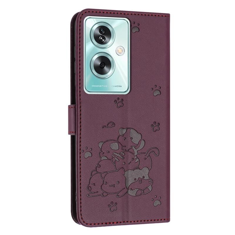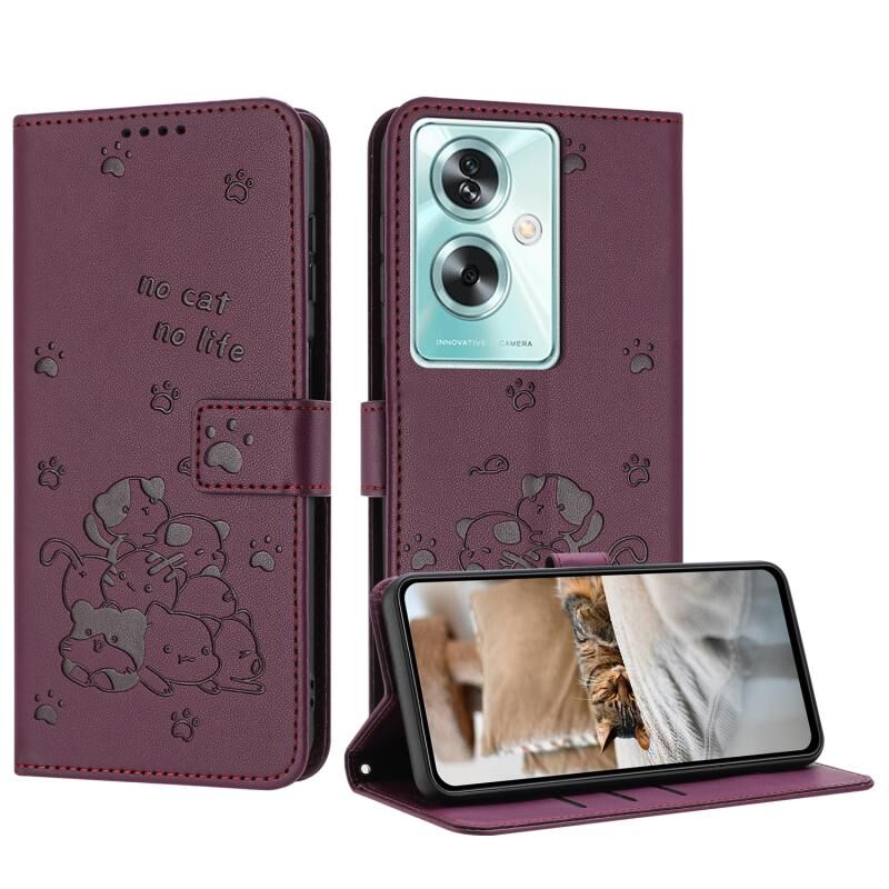 Θήκη δέρματος τηλεφώνου με ανάγλυφο γατάκι και λουρί για OnePlus Nord N30 SE 5G Global (Μωβ)