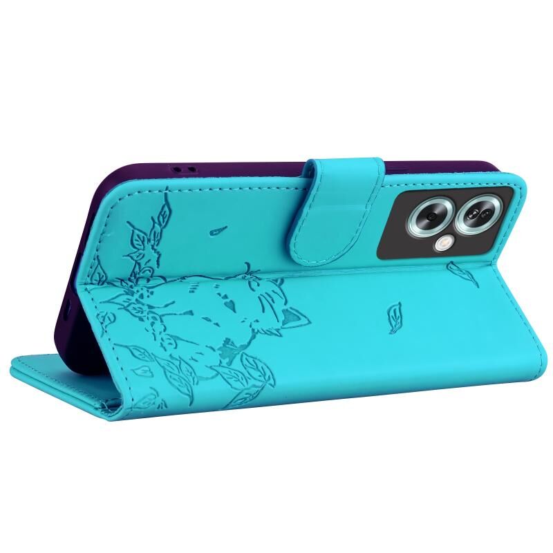 Θήκη τηλεφώνου από δέρμα με ανάγλυφο χαριτωμένο γατάκι για OnePlus Nord N30 SE (Γαλάζιο του ουρανού)