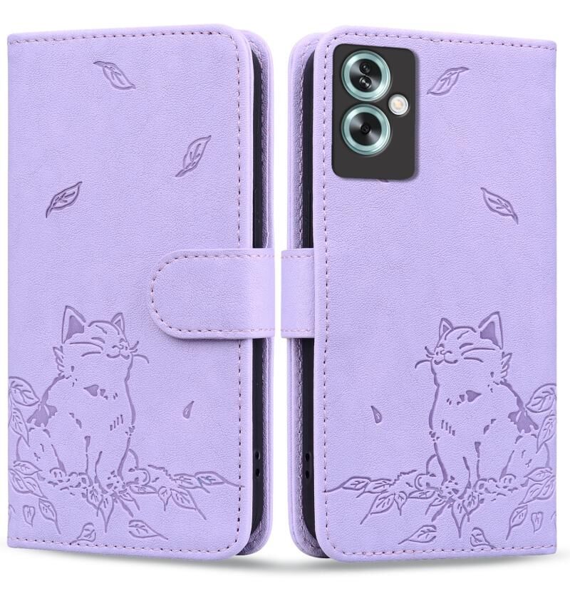 Θήκη τηλεφώνου από δέρμα με ανάγλυφο χαριτωμένο γατάκι για OnePlus Nord N30 SE (Γαλάζιο του ουρανού)