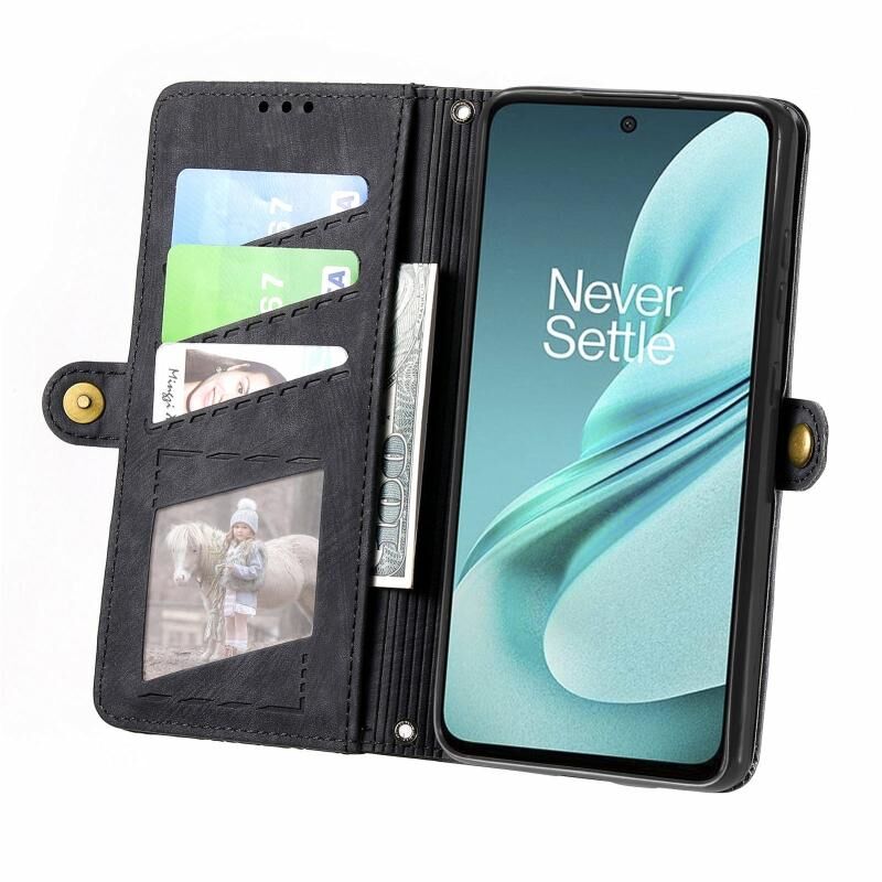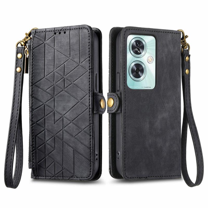 For OnePlus Nord N30 SE Geometric Zipper Wallet Side Buckle Leather Phone Case(Black)