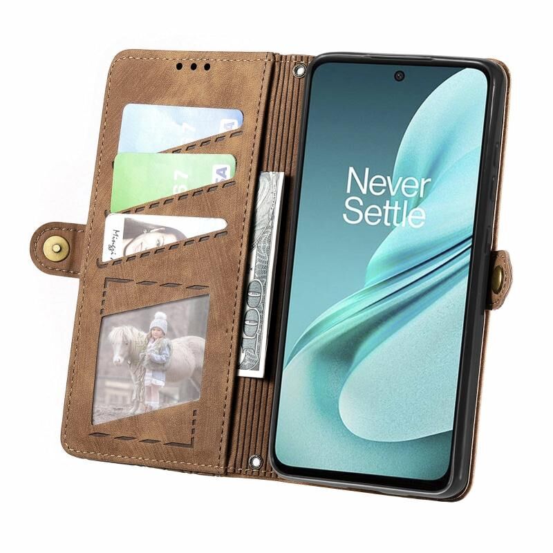 For OnePlus Nord N30 SE Geometric Zipper Wallet Side Buckle Leather Phone Case(Brown)