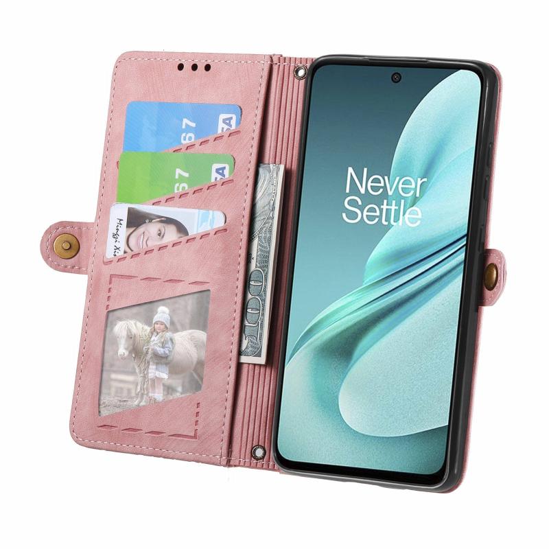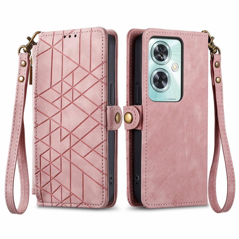 For OnePlus Nord N30 SE Geometric Zipper Wallet Side Buckle Leather Phone Case(Pink)