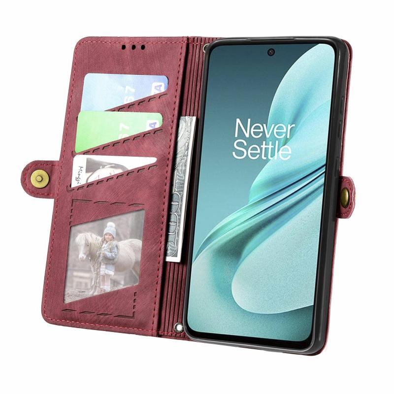For OnePlus Nord N30 SE Geometric Zipper Wallet Side Buckle Leather Phone Case(Red)