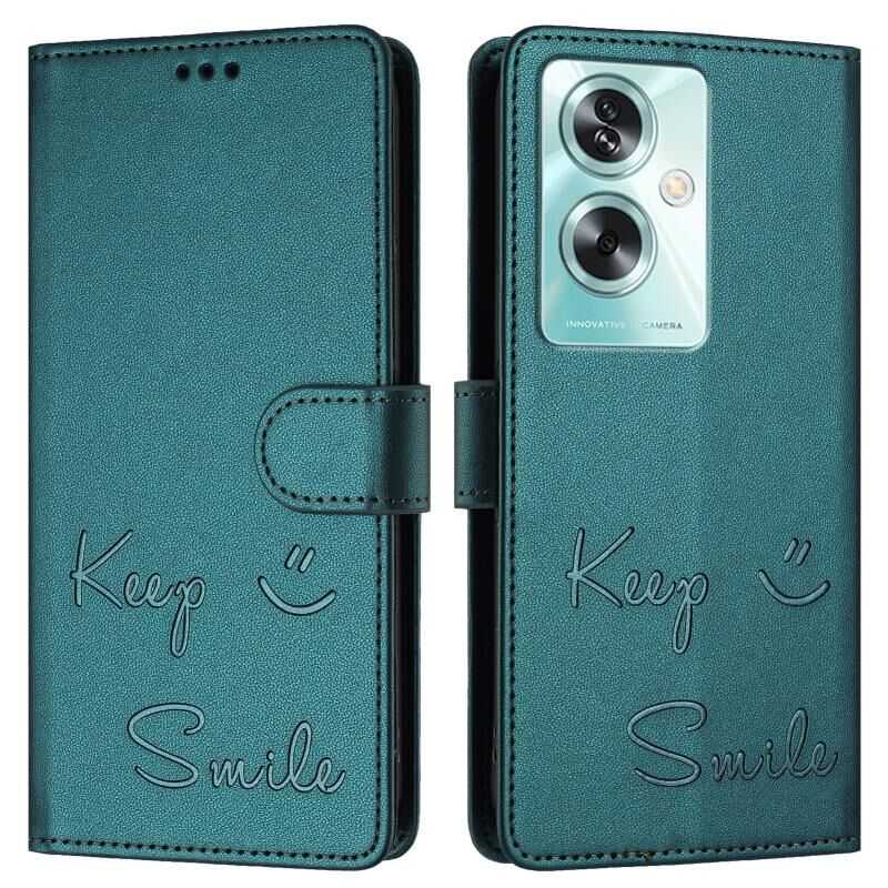 Για OnePlus Nord N30 SE Χαμόγελο ανάγλυφο RFID δερμάτινη θήκη τηλεφώνου (Peacock Green)
