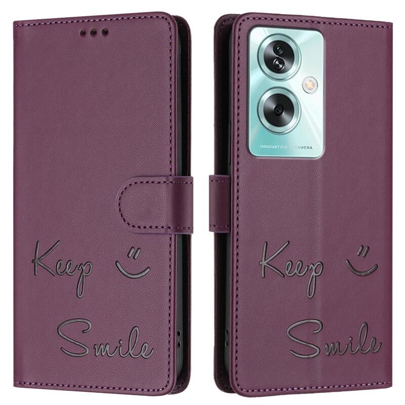 Για OnePlus Nord N30 SE Χαμόγελο ανάγλυφο RFID δερμάτινη θήκη τηλεφώνου (Violet)