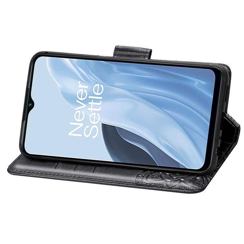 Θήκη τηλεφώνου από δέρμα με ανάγλυφο σχέδιο πεταλούδας και λουλουδιών για OnePlus Nord N300 (Μαύρο)