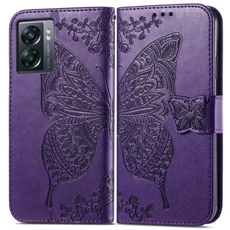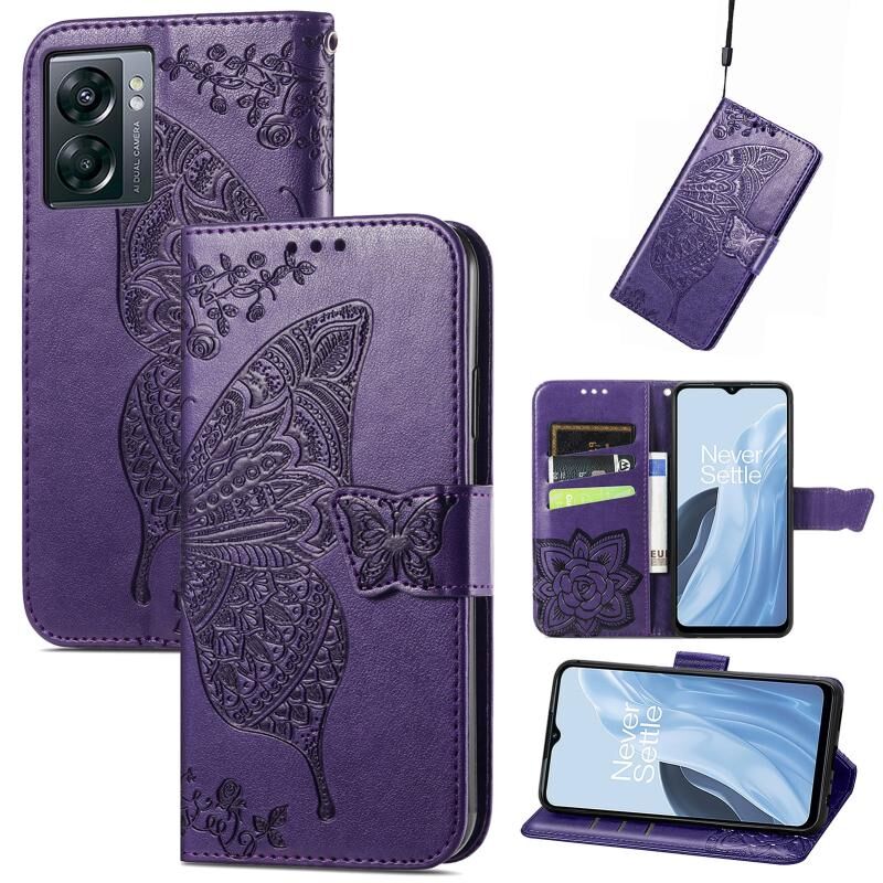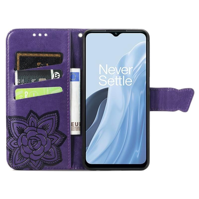 Θήκη τηλεφώνου από δέρμα με ανάγλυφο σχέδιο πεταλούδας και λουλουδιών για OnePlus Nord N300 (Μαύρο)