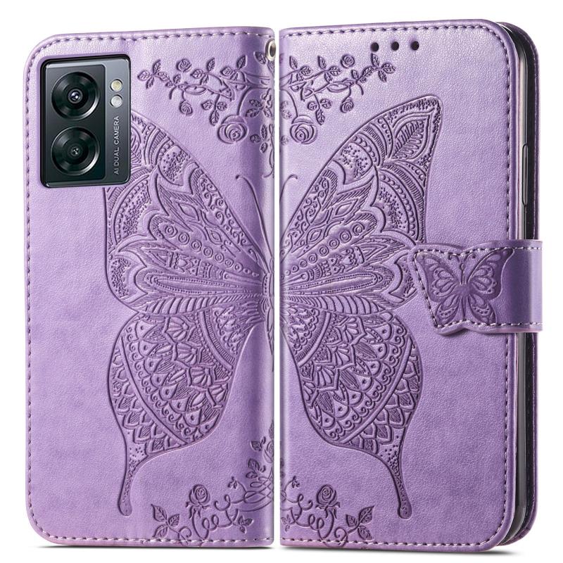 For OnePlus Nord N300 Butterfly Love Flower Embossed Flip Leather Phone Case(Light Purple)