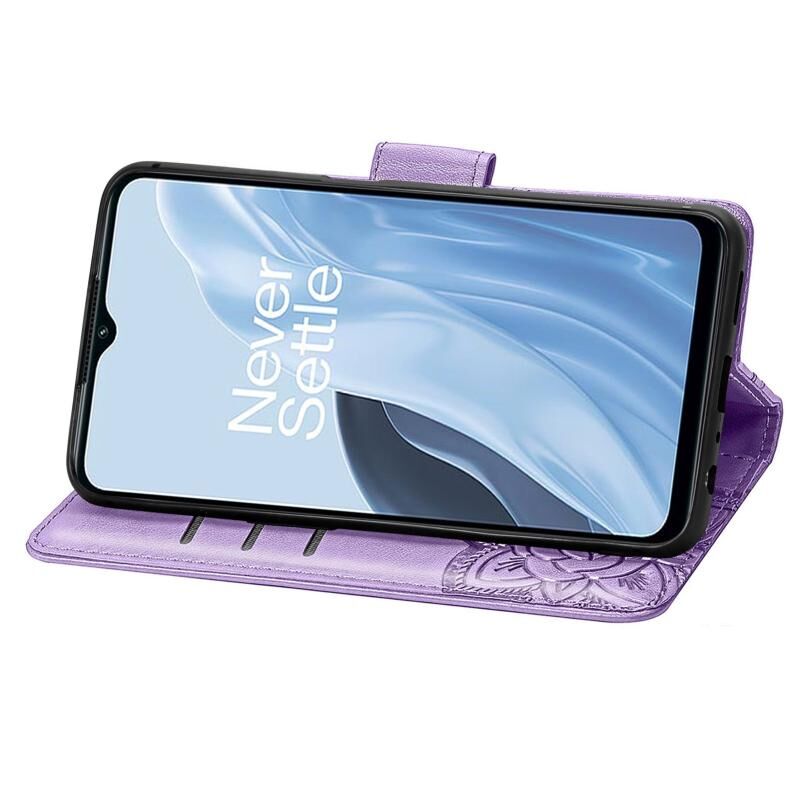 Θήκη τηλεφώνου από δέρμα με ανάγλυφο σχέδιο πεταλούδας και λουλουδιών για OnePlus Nord N300 (Μαύρο)