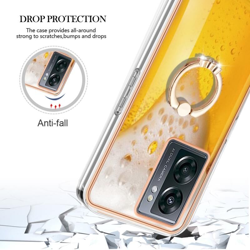 Θήκη τηλεφώνου για OnePlus Nord N300 με ηλεκτρολυτική επιμετάλλωση, διπλής όψης IMD με δακτύλιο στήριξης (Μπύρα βαρελίσια)
