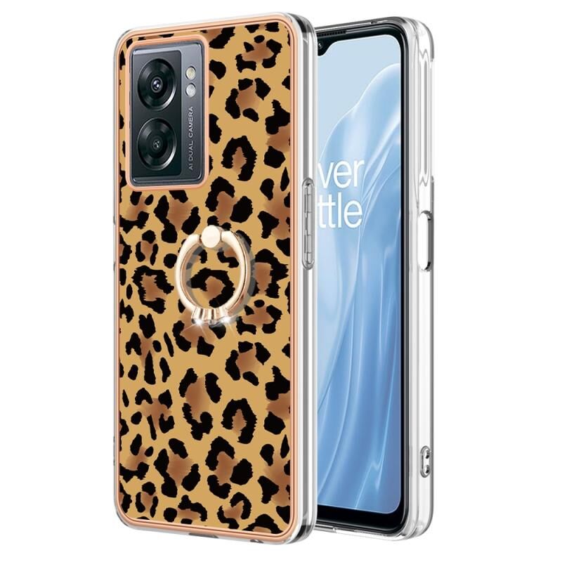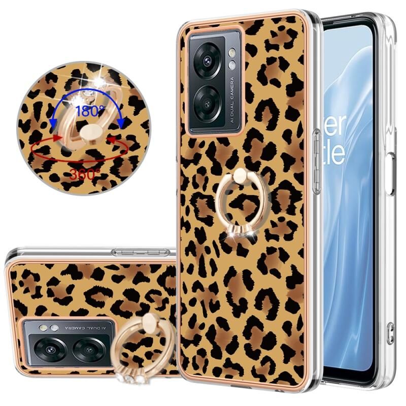 Θήκη τηλεφώνου για OnePlus Nord N300 με ηλεκτρολυτική επιμετάλλωση, διπλής όψης IMD με δακτύλιο στήριξης (εκτύπωση λεοπάρδαλης)