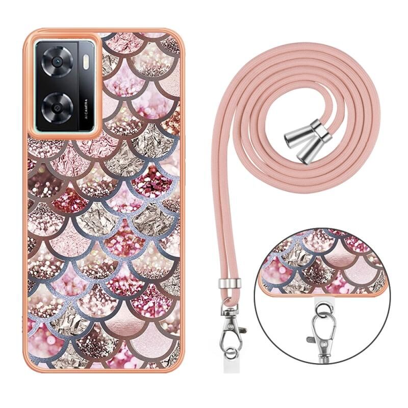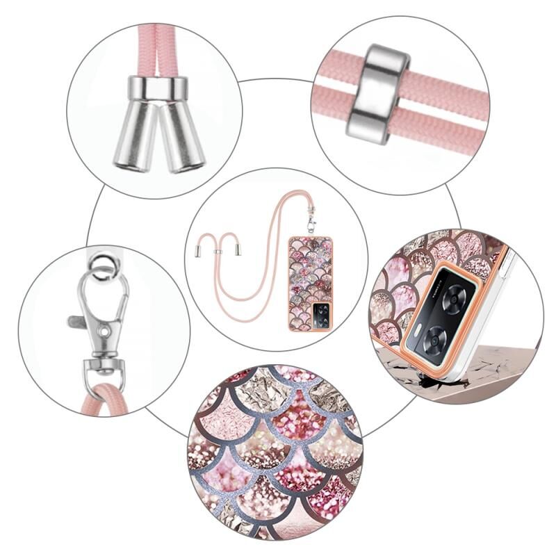 Θήκη τηλεφώνου OnePlus Nord N300 Electroplating IMD TPU με κορδόνι (Ροζ Λέπια)